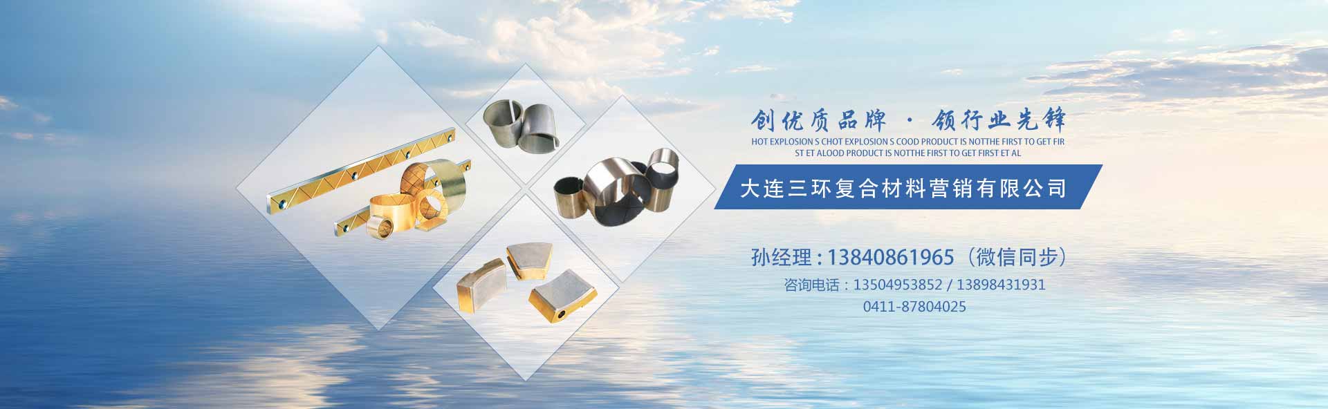 大連三環(huán)復合材料營銷有限公司成立于1991年,是一家研發(fā)、制造、銷售固體潤滑軸承及塑料—金屬復合材料滑動軸承的公司。 公司坐落在美麗的濱城大連,擁有鋼背復合材料軸承、自潤滑關節(jié)軸承、氟塑瓦(彈性金屬塑料瓦)等產品的生產廠,自有檢驗試驗和生產制造設